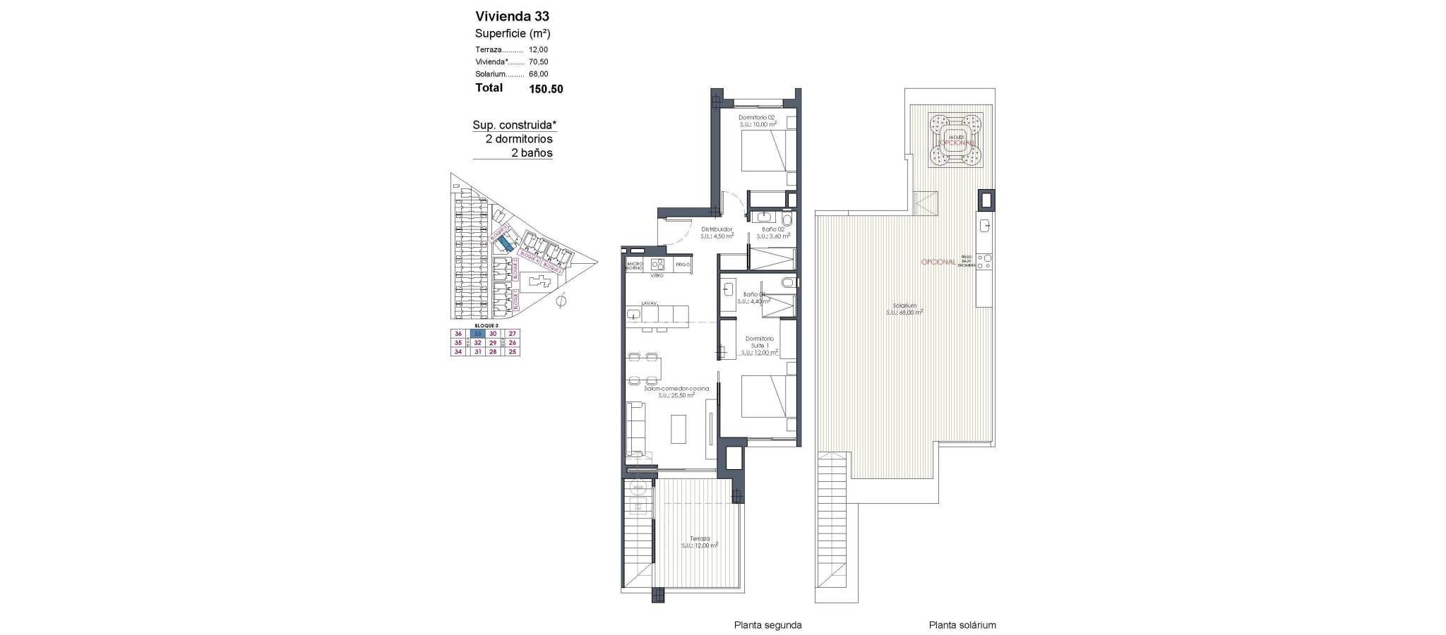 New Build Resort Apartments at La Serena Golf-Los Alcazares Near the Beach Modern Golf Front Living on the Costa Calida Discover this exclusive new build residential resort located at La Serena Golf in Los Alcazares. This contemporary development features 66 stylish apartments with 2 or 3 bedrooms and 2 bathrooms, one of them en suite, designed to offer comfort, elegance and an exceptional Mediterranean lifestyle just 300 meters from the Mar Menor. Los Alcazares is a charming coastal town known for its relaxed atmosphere, sandy beaches and long seaside promenade. With more than 300 days of sunshine per year, the area offers a perfect environment for outdoor living, water sports and golf. The town also provides a wide selection of restaurants, shops, marinas and sports facilities, making it a highly desirable destination for both permanent residence and holiday homes. Apartments with Terraces, Gardens and Private Solariums The residential complex offers several property types to suit different lifestyles. Buyers can choose between ground floor apartments with private gardens, middle floor homes with spacious terraces or penthouses with terraces and large rooftop solariums. The solariums include an outdoor shower and offer the option to add a summer kitchen and private jacuzzi, creating an ideal space for relaxation and entertaining while enjoying open views of the golf course and surrounding landscape. Each home has been designed with bright interiors and open plan living spaces that connect seamlessly with the outdoor areas. Resort Style Amenities and Exceptional Communal Areas One of the most distinctive features of this development is its resort style concept. Residents can enjoy a spectacular lagoon style swimming pool of approximately 190 m2 with beach style access and relaxing areas with Balinese beds. Additional communal facilities include landscaped gardens, a spa area, gym and sauna located in the basement level. The complex also offers a children playground, two petanque courts and communal restrooms near the pool area, creating a welcoming environment for residents and guests. Quality Finishes and Modern Features The apartments are built with modern materials and high quality specifications designed for comfort and style. Fully equipped kitchen with white glass finish appliances Bathrooms with vanity units, shower screens and backlit mirrors Motorized window shutters Basic lighting package Fully installed ducted air conditioning Underground parking space for each property Underground bicycle parking and optional storage rooms Prime Location Close to Beach and Golf Mar Menor beach 0.3 km La Serena Golf next to the development Los Alcazares town center 2 km Cartagena 22 km Murcia 40 km Region de Murcia International Airport 30 km Alicante Elche Airport 90 km The calm and shallow waters of the Mar Menor are ideal for swimming, sailing and paddle surfing throughout the year. Secure Your Home at La Serena Golf Resort These modern apartments combine beachside living, golf views from most units and resort style amenities in one of the most attractive areas of the Costa Calida. Contact us today to receive more information or arrange a visit and secure your new home in La Serena Golf-Los Alcazares.