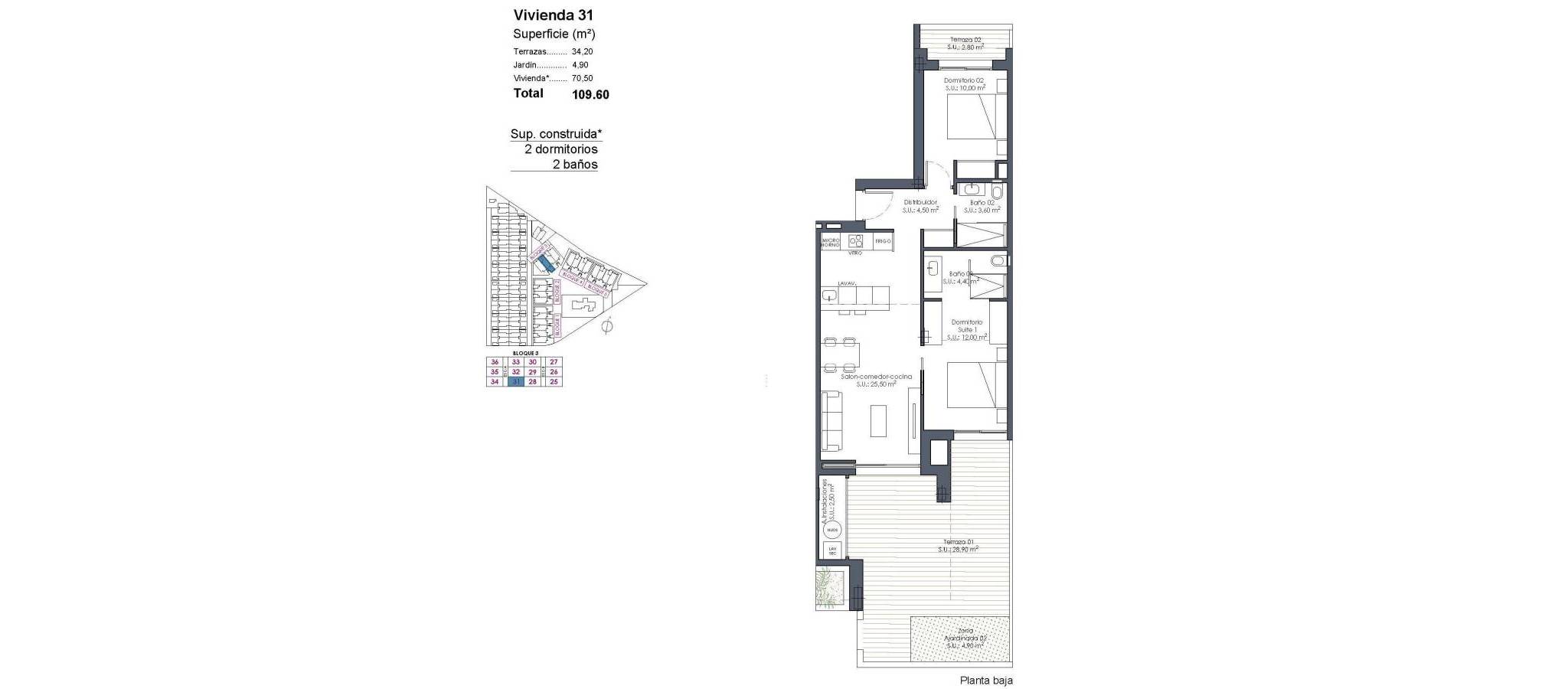 New Build Resort Apartments at La Serena Golf-Los Alcazares Near the Beach Modern Golf Front Living on the Costa Calida Discover this exclusive new build residential resort located at La Serena Golf in Los Alcazares. This contemporary development features 66 stylish apartments with 2 or 3 bedrooms and 2 bathrooms, one of them en suite, designed to offer comfort, elegance and an exceptional Mediterranean lifestyle just 300 meters from the Mar Menor. Los Alcazares is a charming coastal town known for its relaxed atmosphere, sandy beaches and long seaside promenade. With more than 300 days of sunshine per year, the area offers a perfect environment for outdoor living, water sports and golf. The town also provides a wide selection of restaurants, shops, marinas and sports facilities, making it a highly desirable destination for both permanent residence and holiday homes. Apartments with Terraces, Gardens and Private Solariums The residential complex offers several property types to suit different lifestyles. Buyers can choose between ground floor apartments with private gardens, middle floor homes with spacious terraces or penthouses with terraces and large rooftop solariums. The solariums include an outdoor shower and offer the option to add a summer kitchen and private jacuzzi, creating an ideal space for relaxation and entertaining while enjoying open views of the golf course and surrounding landscape. Each home has been designed with bright interiors and open plan living spaces that connect seamlessly with the outdoor areas. Resort Style Amenities and Exceptional Communal Areas One of the most distinctive features of this development is its resort style concept. Residents can enjoy a spectacular lagoon style swimming pool of approximately 190 m2 with beach style access and relaxing areas with Balinese beds. Additional communal facilities include landscaped gardens, a spa area, gym and sauna located in the basement level. The complex also offers a children playground, two petanque courts and communal restrooms near the pool area, creating a welcoming environment for residents and guests. Quality Finishes and Modern Features The apartments are built with modern materials and high quality specifications designed for comfort and style. Fully equipped kitchen with white glass finish appliances Bathrooms with vanity units, shower screens and backlit mirrors Motorized window shutters Basic lighting package Fully installed ducted air conditioning Underground parking space for each property Underground bicycle parking and optional storage rooms Prime Location Close to Beach and Golf Mar Menor beach 0.3 km La Serena Golf next to the development Los Alcazares town center 2 km Cartagena 22 km Murcia 40 km Region de Murcia International Airport 30 km Alicante Elche Airport 90 km The calm and shallow waters of the Mar Menor are ideal for swimming, sailing and paddle surfing throughout the year. Secure Your Home at La Serena Golf Resort These modern apartments combine beachside living, golf views from most units and resort style amenities in one of the most attractive areas of the Costa Calida. Contact us today to receive more information or arrange a visit and secure your new home in La Serena Golf-Los Alcazares.