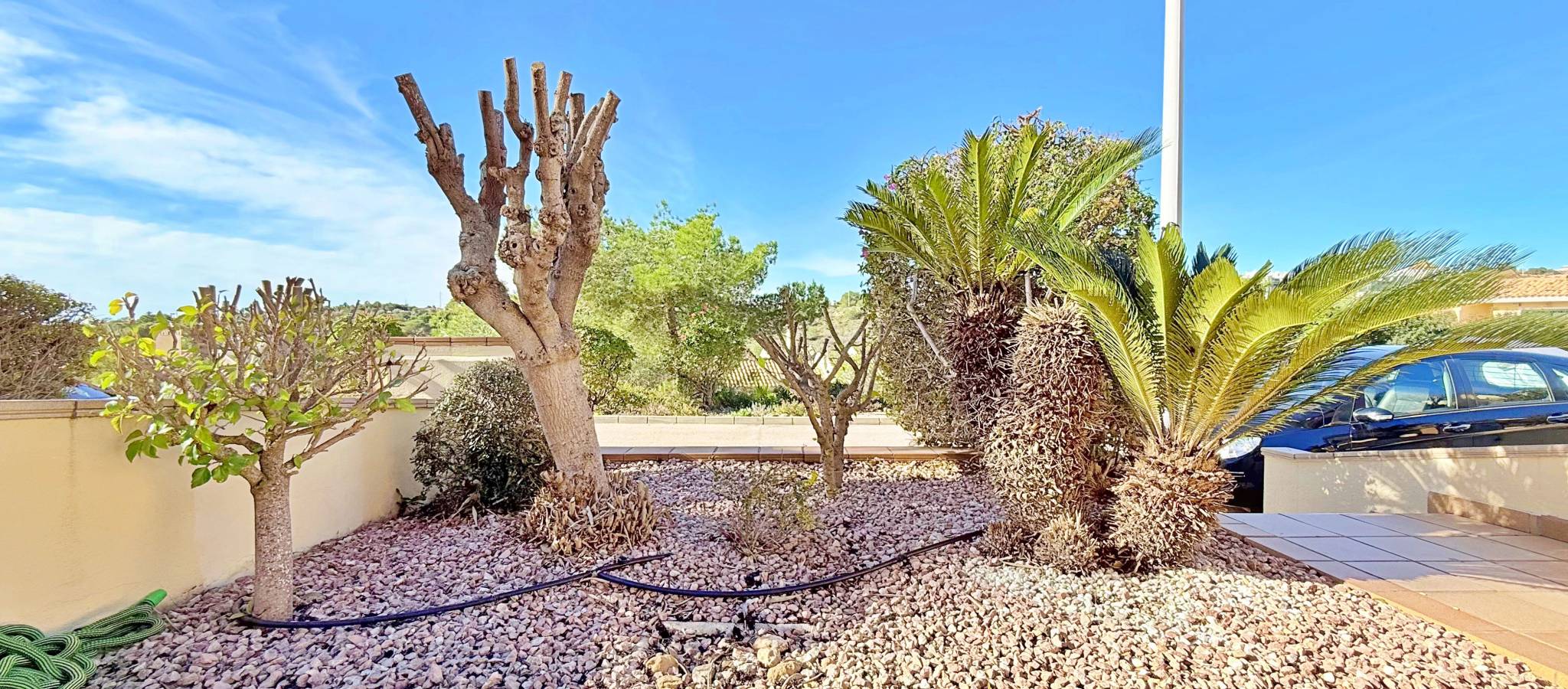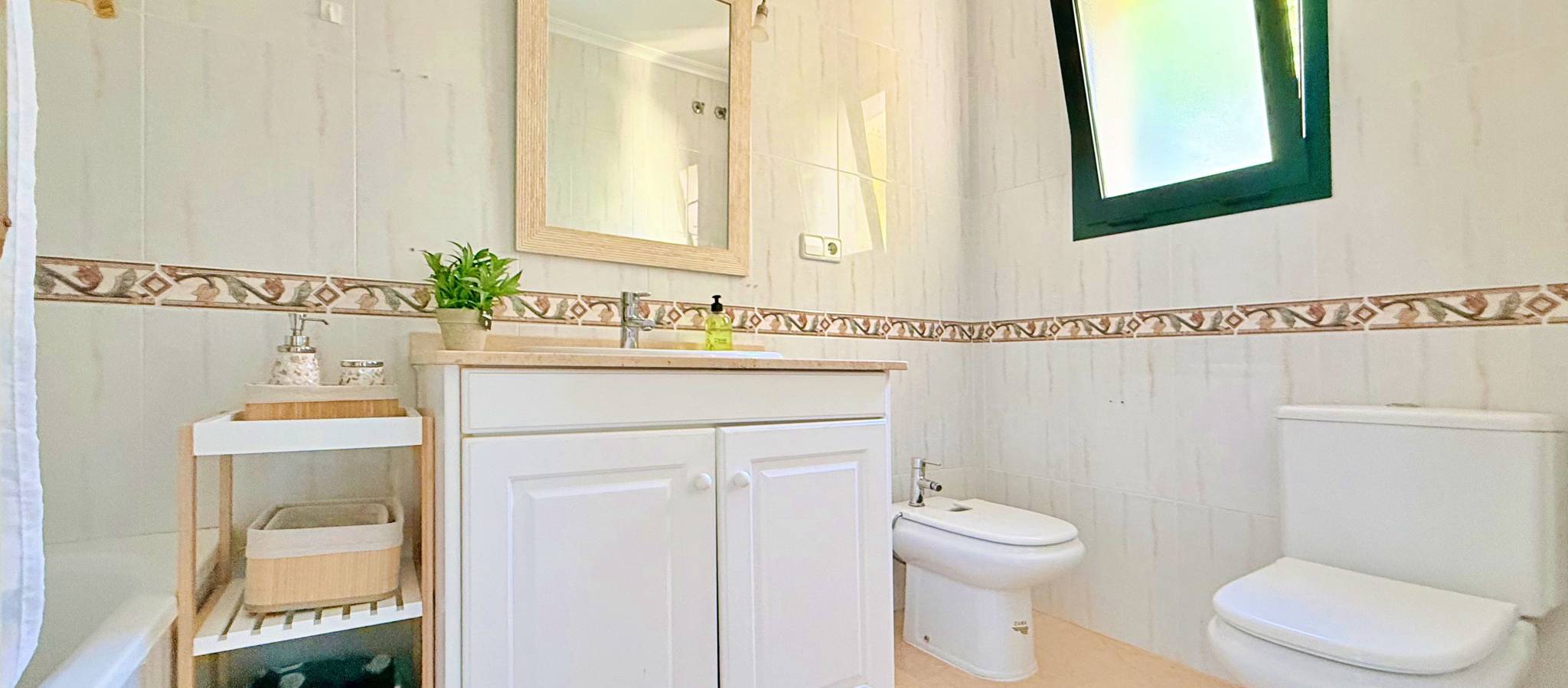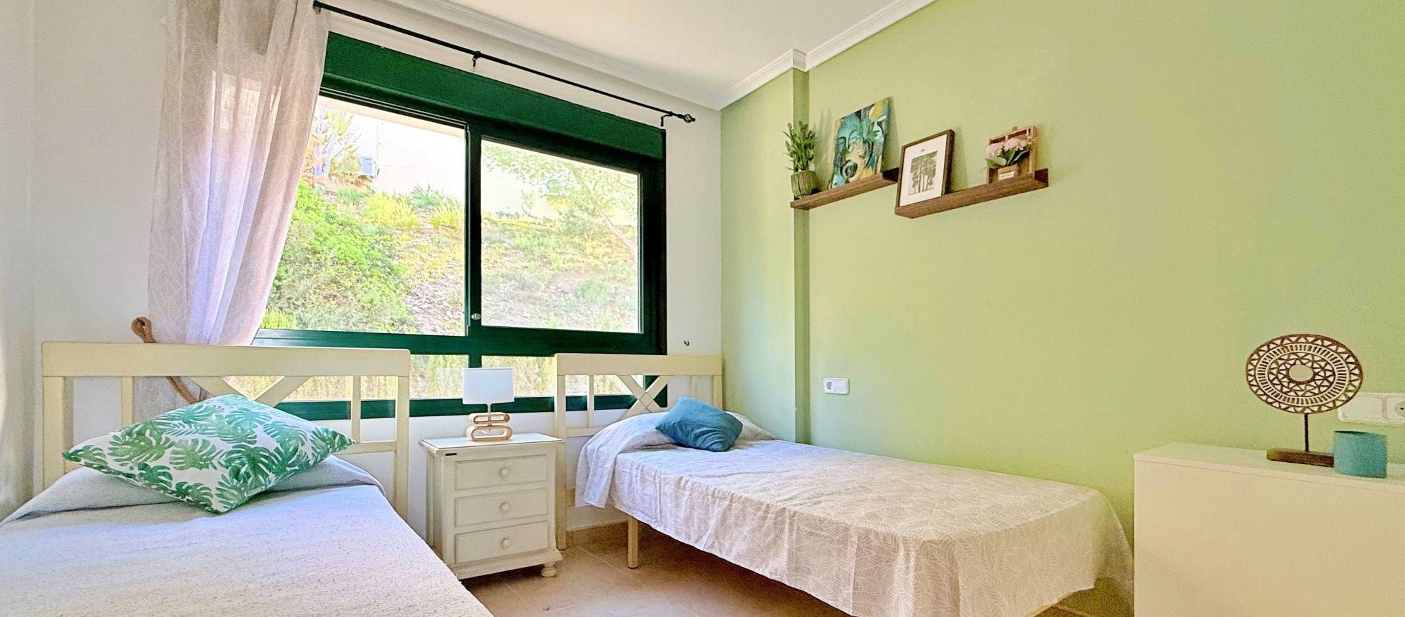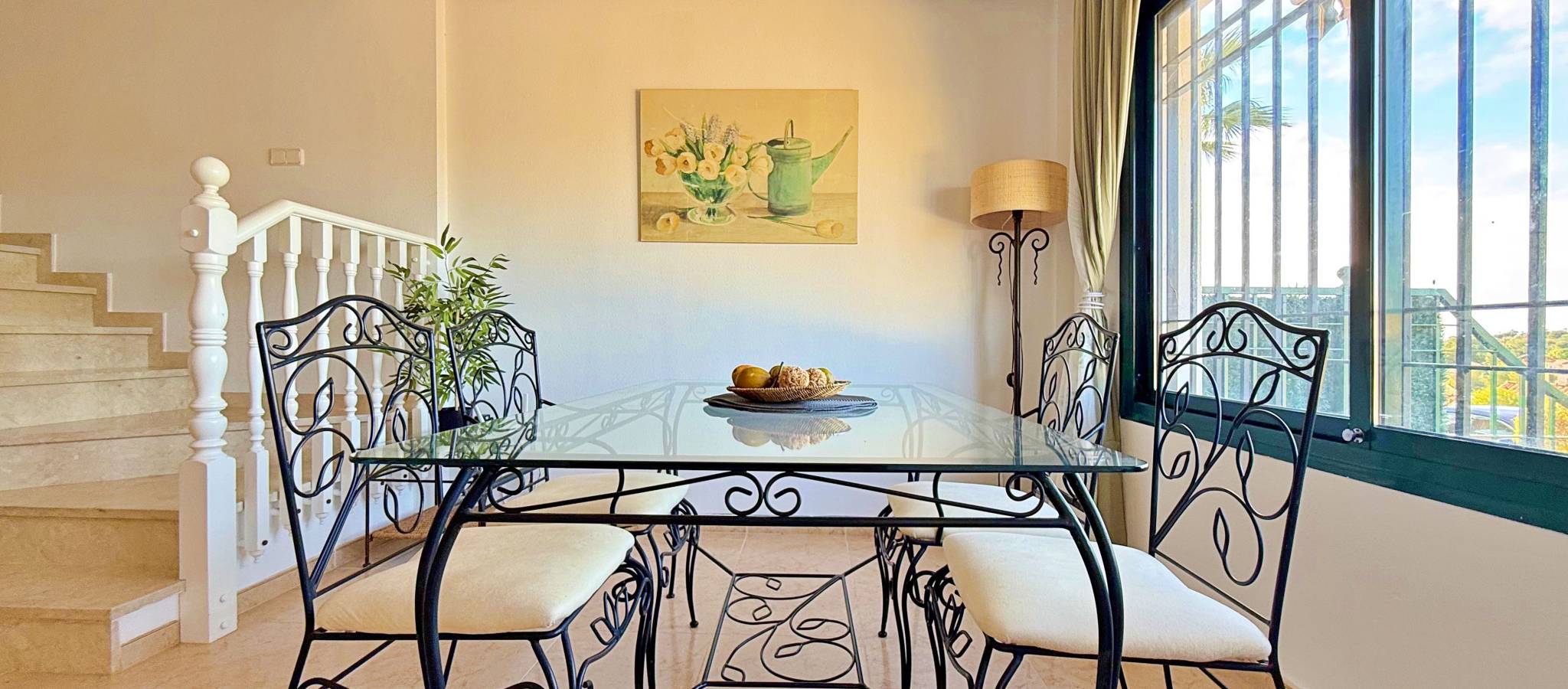 This townhouse in Lomas de Campoamor stands out for its southwest orientation and excellent use of outdoor spaces, designed to enjoy the afternoon sun and sunsets. With 83 m² of living space, it offers a functional layout of 2 bedrooms and 2 bathrooms, is in good condition, and comes equipped with air conditioning. The property's key value lies in its three outdoor areas: a 25 m² garden plot at the entrance, a 15 m² rear porch, and a 33 m² rooftop solarium, offering unobstructed direct views of the golf course. The complex features green areas and a large communal swimming pool. Its location is strategic for golfers and holidaymakers alike: just 500 meters from the Real Club de Golf Campoamor and adjacent to commercial areas with supermarkets and restaurants, offering all amenities within walking distance without sacrificing the tranquility of the surroundings.
