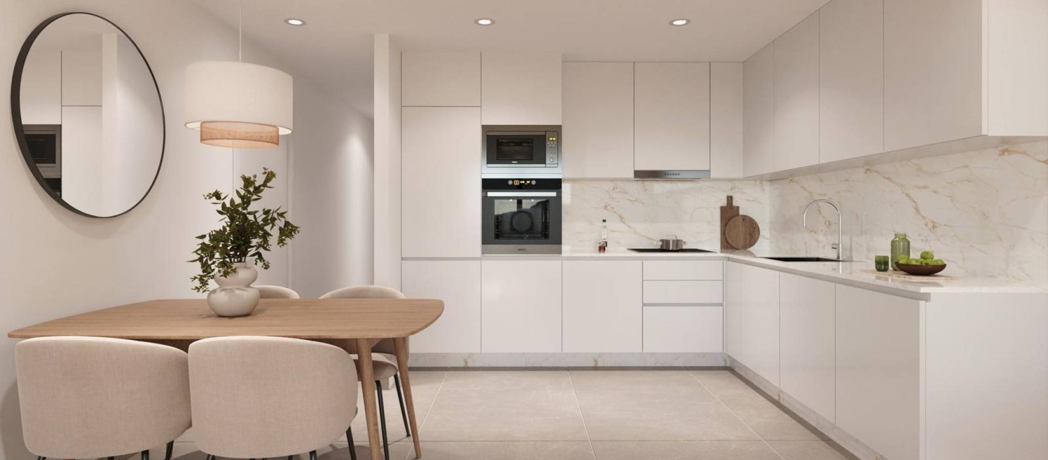 New Build Apartments in Torrevieja Just 400 m from Playa del Cura Prime Location in the Heart of Torrevieja Discover these brand new apartments and penthouses in one of the most sought after areas of Torrevieja, only 400 m from Playa del Cura and just 150 m from the seafront promenade. Located in the city centre, this vibrant neighborhood offers all essential services within walking distance, including supermarkets, shops, restaurants, cafes and public transport. Torrevieja is a well known coastal city on the Costa Blanca, famous for its mild Mediterranean climate, lively atmosphere and year round lifestyle by the sea. Modern Apartments with Spacious Layouts This exclusive new development consists of only 12 apartments and penthouses with 2 or 3 bedrooms, designed to offer comfort, functionality and contemporary style. Middle floor apartments feature generous terraces, while the penthouses enjoy an additional private solarium, ideal for sunbathing or outdoor dining. All homes include an open plan kitchen connected to the living and dining area, creating bright and welcoming interiors. Bedrooms come with fitted wardrobes, and bathrooms are fully equipped with furniture, mirrors and shower screens. Optional underground parking spaces and storage rooms are available at an extra cost. Quality Finishes and Energy Efficient Features The apartments are built with high quality materials and a strong focus on energy efficiency. Exterior aluminum carpentry includes thermal break technology and double glazing for thermal and acoustic insulation. Motorized shutters add comfort and security. Each home has pre installation for ducted air conditioning and heating, reinforced entrance doors and white lacquered interior doors. Hot water is produced through an aerothermal system, reducing energy consumption and improving sustainability. Rooftop Solarium with Communal Pool Residents can enjoy an exclusive rooftop solarium with a communal swimming pool, accessible by lift or stairs. This private area is perfect for relaxing, sunbathing and enjoying open views over the city. It provides a peaceful retreat above the lively streets of Torrevieja and adds significant value to the development. Torrevieja Lifestyle and Surroundings Torrevieja is known for its long coastline, sandy beaches and iconic salt lagoons. The Natural Park of La Mata and Torrevieja lagoons is approximately 5 km away and offers walking trails and unique landscapes. Several golf courses such as Villamartin Golf and Las Colinas Golf are within 12 to 18 km. Torrevieja Marina and port are around 1 km away. Alicante Airport is approximately 45 km and Murcia International Airport around 65 km, both with excellent European connections. Your Coastal Home Awaits Do not miss this opportunity to own a modern new build apartment close to the beach in Torrevieja. Contact us today for more information or to arrange a private viewing.