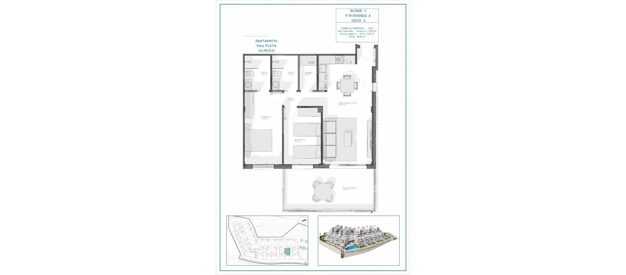 New Build Apartments in Vera Playa, Almería – Modern Homes Near the Sea Contemporary Living in Pueblo Salinas, Just 2 km from the Beach Introducing a stunning new residential development located in the sought-after area of Vera Playa, within the exclusive Pueblo Salinas urbanization. This modern complex offers a privileged lifestyle just 2 km from the beaches of Vera (Almería), boasting spectacular sea views and a peaceful Mediterranean environment ideal for year-round living or holiday enjoyment. Elegant Homes with Modern Comfort and Style This new development consists of 60 high-quality apartments distributed across 5 low-density blocks, with only two properties per floor. Choose between 2 or 3-bedroom layouts designed with functionality, comfort, and style in mind. Options include: Ground floors with private gardens Middle-floor units with spacious terraces Top-floor penthouses with large solariums including summer kitchen and pergola with solar panels. All properties feature: Open-plan fully equipped kitchens with integrated fridge, dishwasher, induction hob, oven, microwave, and extractor fan Bright living spaces and LED lighting throughout (except bedrooms) Motorized aluminum shutters in bedrooms Bathrooms with modern finishes, including towel heaters, shower trays with glass screens and built-in furniture Pre-installation of ducted air conditioning Aerothermal system for efficient hot water production Security entrance door Exceptional Community Amenities Residents will enjoy access to a wide range of amenities designed to enhance comfort and leisure, including: Two outdoor swimming pools perfect for the summer months One indoor heated pool for year-round use Private parking space and storage unit included with every property Pre-installation for electric vehicle charging at parking areas Prime Location with Excellent Connections Vera Playa is a popular coastal destination known for its wide sandy beaches and relaxed lifestyle. The development’s location provides easy access to essential services and attractions: Beach: 2 km Desert Springs Golf Resort: 8 km Vera town center: 5 km Garrucha marina and restaurants: 6 km Parque Comercial Mojácar: 10 km Almería Airport: 85 km (1 hour by car) Make Vera Playa Your New Home Whether you're looking for a permanent residence, a holiday retreat, or a smart investment, these new build apartments offer unmatched value in one of the most desirable areas of the Costa de Almería. Contact us today for more information and to schedule your visit.