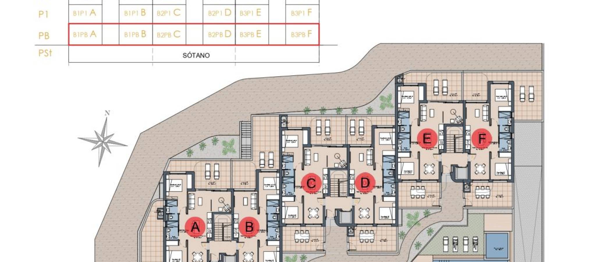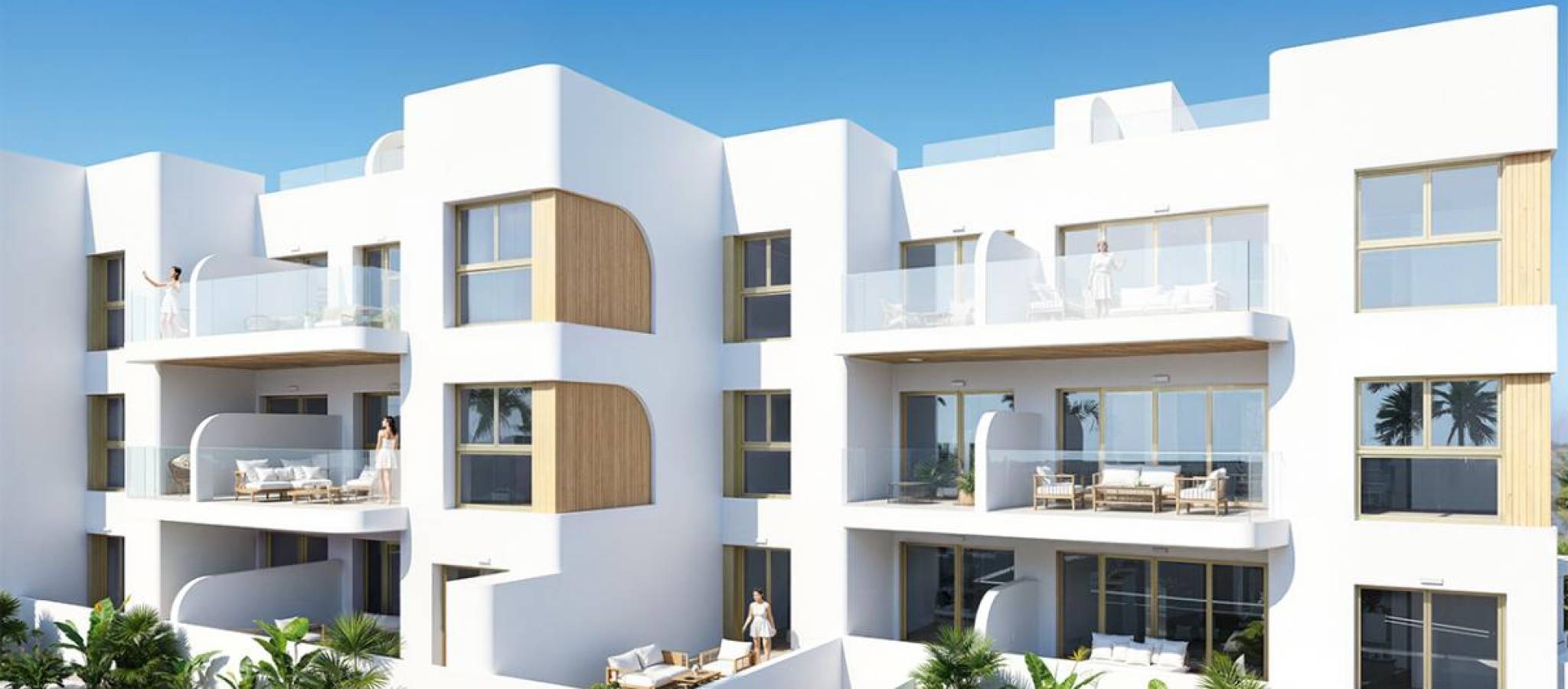 Built area: between 72 and 100 m²Terraces: up to 60 m²Bedrooms: 2 or 3Bathrooms: 2Community swimming pool