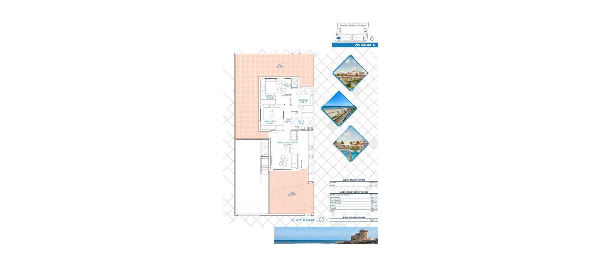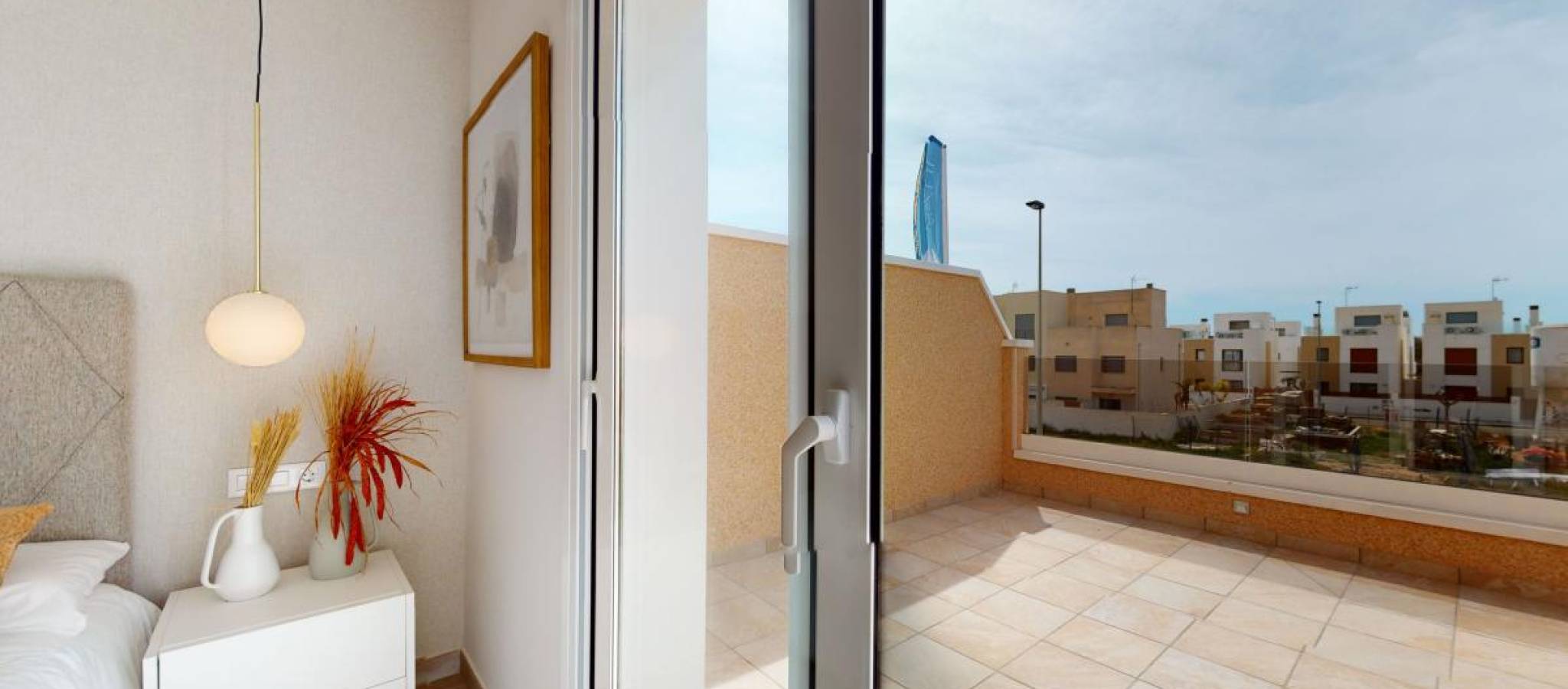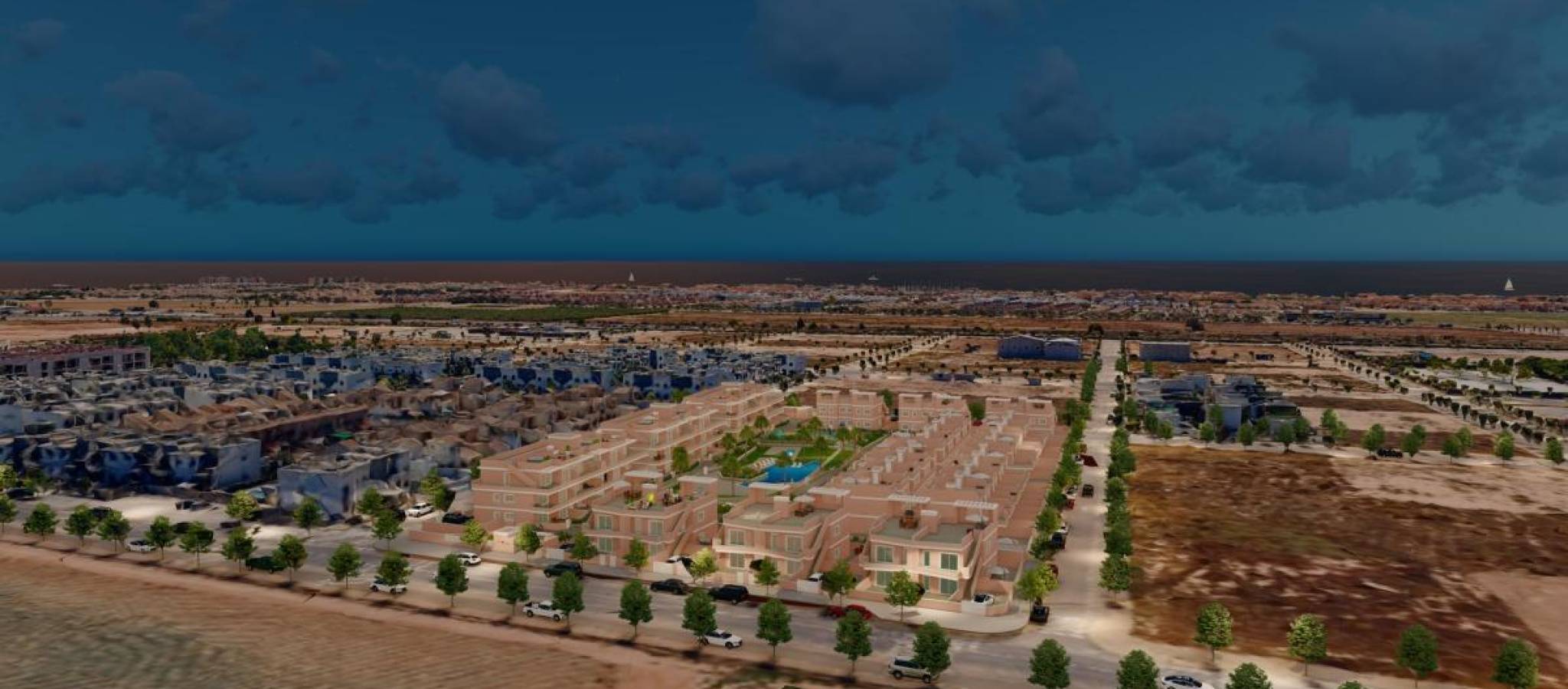 An exclusive new-build residential development located in the picturesque Costa Blanca. Situated just 2 km from the sea, this complex offers modern three-bedroom, two-bathroom homes, with private parking included in the price. The residential area features spacious and pleasant common areas, such as a community swimming pool, landscaped gardens, and a children's playground, ideal for the whole family to enjoy. This development offers various typologies to suit your needs: Ground floors with private gardensMiddle floor apartments with large terracesPenthouses with private solariumsGround floor bungalows with private gardensUpper floor bungalows with garden and private solariumSemi-detached houses with garden and solarium All homes are designed in a modern style, using high-quality materials and contemporary finishes. The properties include top-tier amenities, such as: Pre-installation of ducted air conditioningExterior aluminium carpentry with thermal break and double glazingArmoured front door for additional securityAerothermal system for efficient hot water productionBuilt-in wardrobes with LED lightingBathroom furniture and shower screens included Located in the southern Costa Blanca, Pilar de la Horadada offers a spectacular coastal environment, with an enviable climate and exceptional quality of life. Its lively centre boasts a diverse range of shops, supermarkets, restaurants, and essential services. In just a 5-minute drive, you can enjoy the beaches of Torre de la Horadada and Mil Palmeras, with their golden sands and charming promenades. The area also offers bike lanes, hiking trails, and a variety of sports activities.