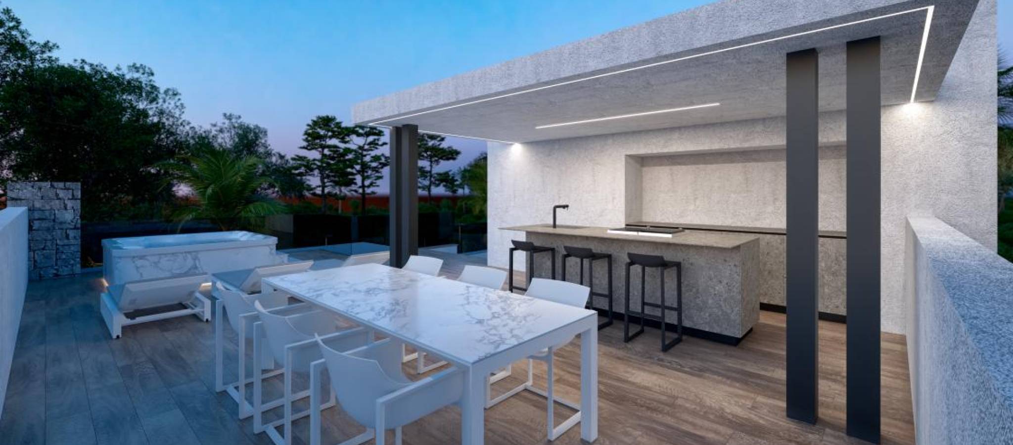 In the region of Murcia, spectacular new-build villas are strategically located. They offer the perfect combination of tranquillity and natural scenery, with prominent views of golf courses and just 10 minutes from the beaches of the Mar Menor. These exclusive homes feature three spacious bedrooms, each with its own bathroom, an additional guest toilet, and a large open-plan living room with equipped kitchen, highlighted by its double-height design. Externally, each villa boasts a private pool, solarium with pre-installation for a jacuzzi, and a spacious basement. The villas are characterised by their modern high-quality finishes and efficient space distribution. The residential complex offers security and tranquillity, as it is gated and monitored 24 hours a day. Its design includes a vast green area of 126,000 m² featuring walking and cycling paths, sports facilities, paddle and tennis courts, a mini-golf course, and spaces dedicated to gardens and dog parks. An impressive artificial lake of nearly 17,000 m², surrounded by white sandy beaches, becomes the focal point of the complex. This expansive lake includes two islands, one of which houses a bar and several beach kiosks that allow enjoyment of the idyllic surroundings in a Caribbean style. The villas offer an ideal setting to enjoy life, with amenities such as a private pool and an extensive private garden. Located less than 4 km from the coast and the town of Los Alcázares, the complex allows enjoyment of various activities, including numerous water sports. Proximity to the city of Cartagena and the Murcia airport, just 22 km away, ensures access to a varied cultural, gastronomic, and sports offer. Each villa is constructed with brick, fitted with PVC windows, air conditioning for heating, and solar panels for hot water. This complex promises an exclusive lifestyle, where modernity and comfort are at the forefront. For more information and exclusive presentations, visit: here.