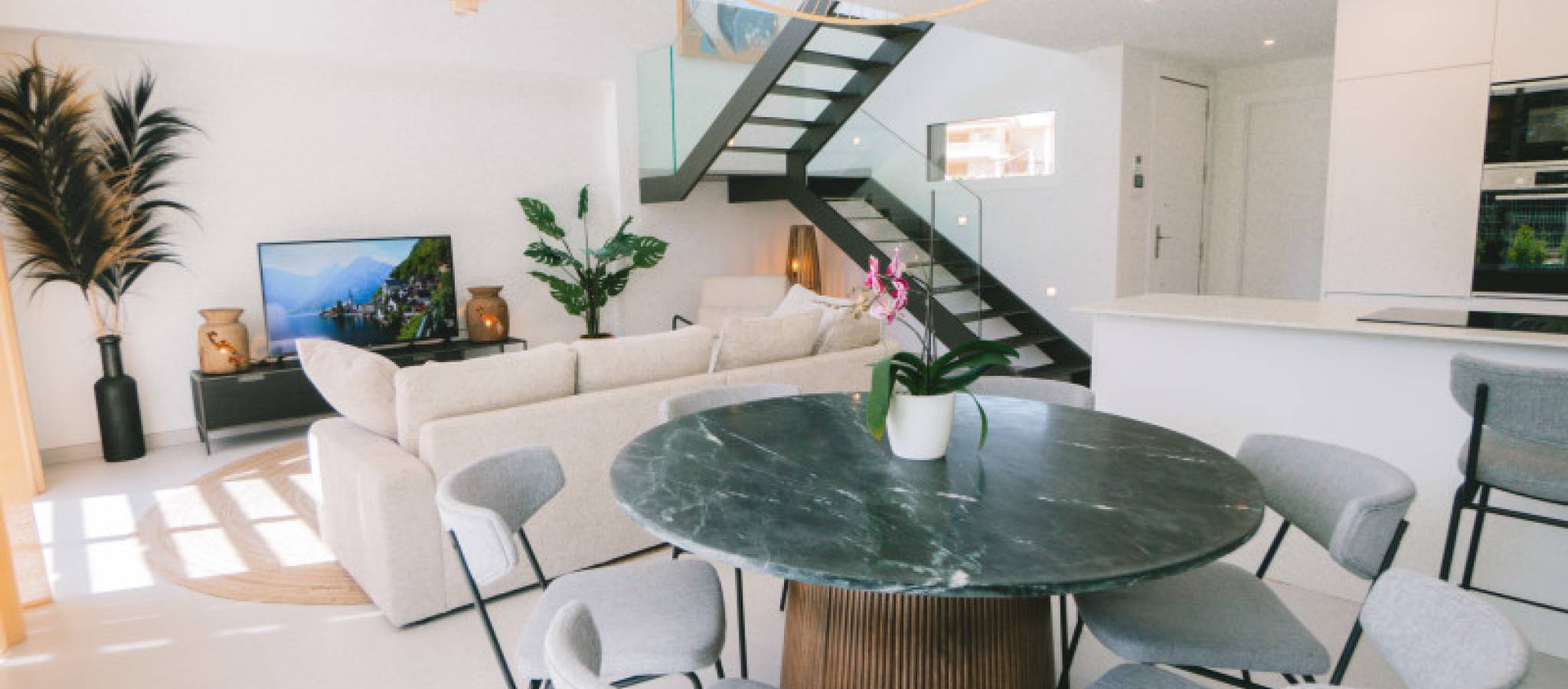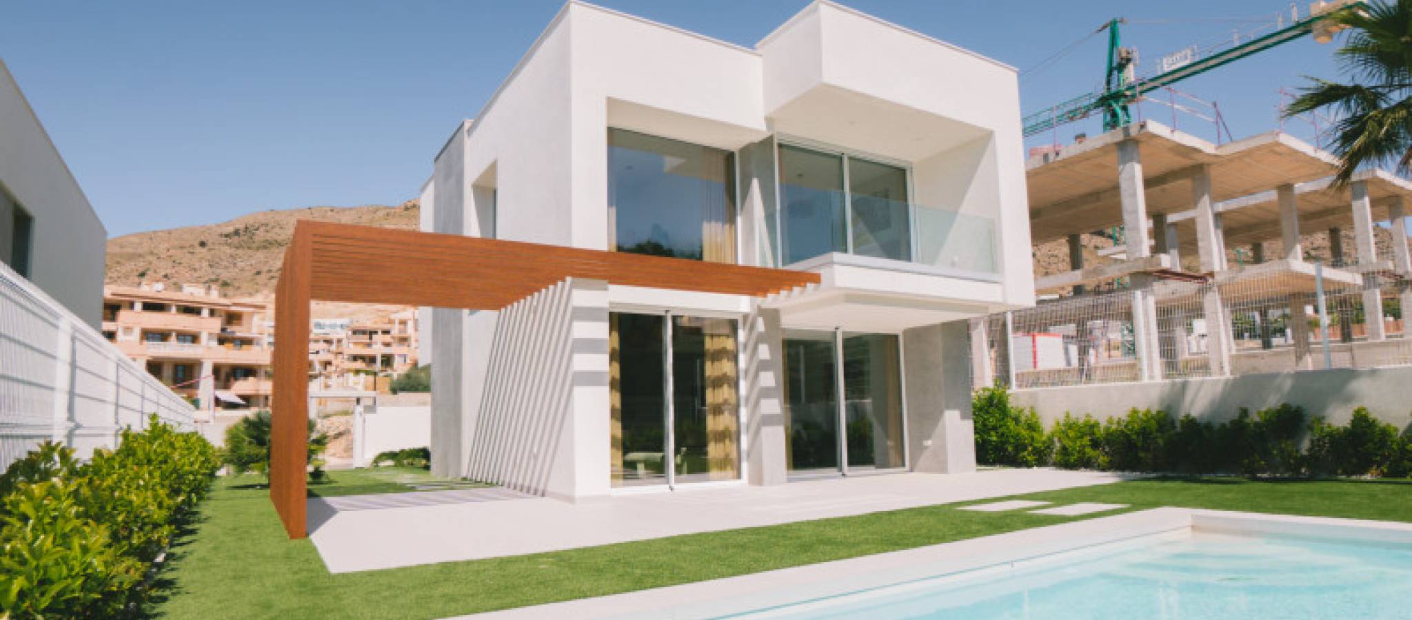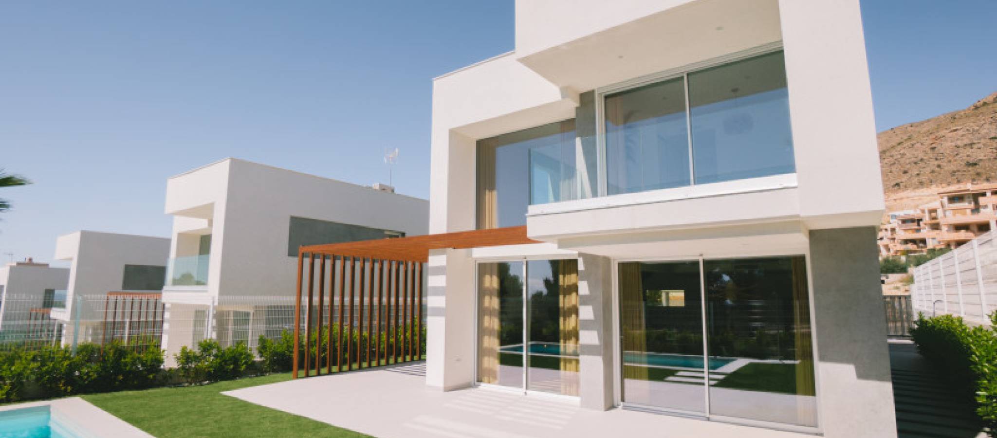 Discover the allure of real estate in Complex, where minimalist villa designs meet tranquil Mediterranean surroundings. These exclusive villas blend elegance and comfort amidst a harmonious setting that respects the balance between sea and nature. Nestled in the privileged area near Alicante, these independent homes offer a unique lifestyle. The villas, set on private plots, provide an unparalleled outdoor living experience with complete privacy. Featuring integrated living rooms and kitchens alongside three bedrooms and three bathrooms, the layout offers a sense of spaciousness. Each villa sits on a plot exceeding 400 square meters, boasting expansive terraces and a private pool, perfect for soaking up the Mediterranean lifestyle characterized by sunshine, light, and nature. Finestrat is close to vibrant destinations like Altea, Calpe, Villajoyosa, Moraira, and other iconic spots within the mesmerizing Costa Blanca. Enjoy the advantages of a new building in Complex, located less than 3 km from Benidorm's renowned beaches. The Alicante province offers modern transportation links with major highways, high-speed trains, and trams. The international airport nearby connects to over 110 destinations, offering easy accessibility. Just a five-minute drive from Finestrat's shopping center, this location provides all the conveniences you need alongside peaceful living.