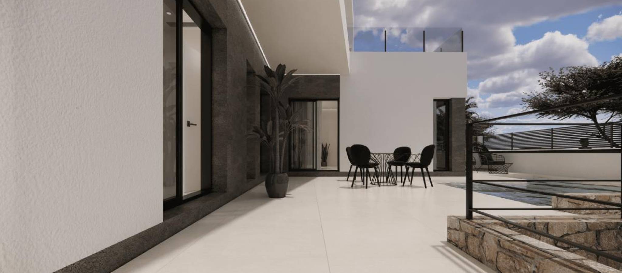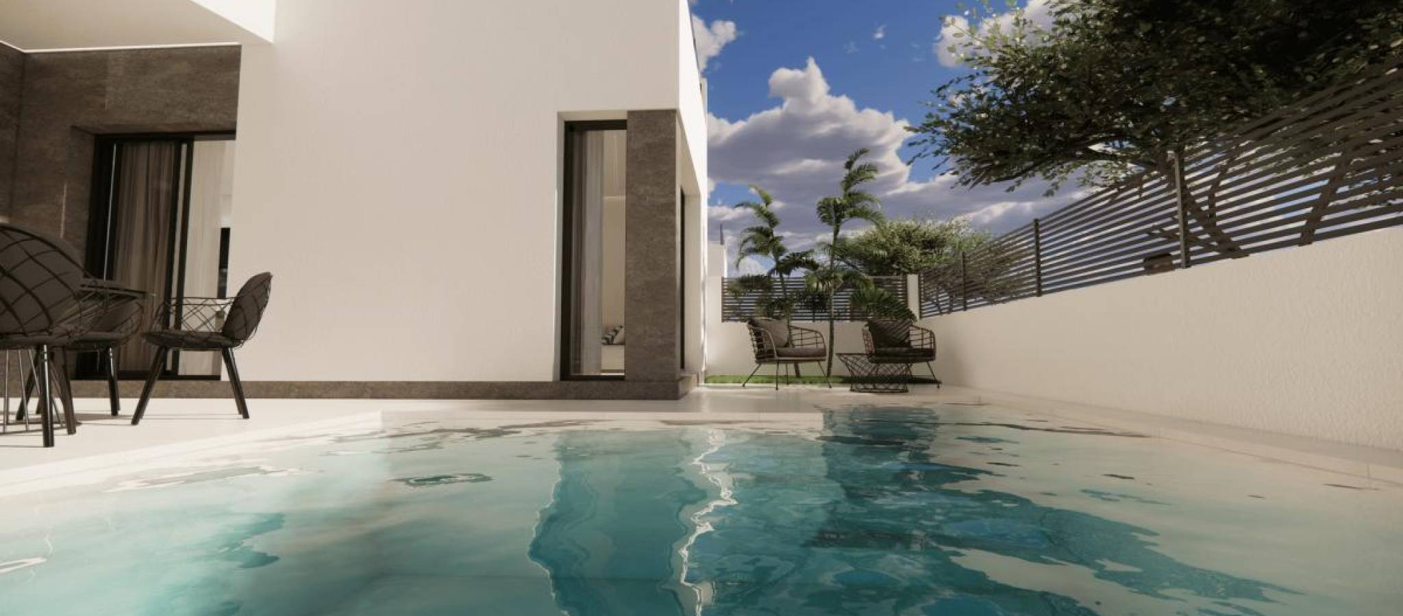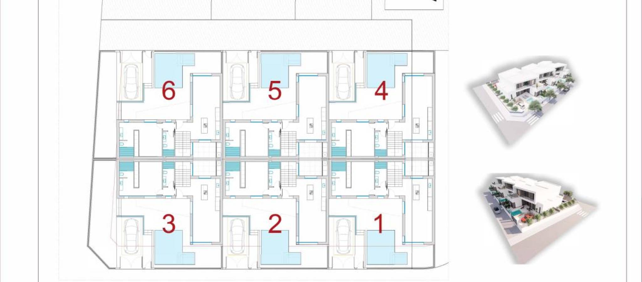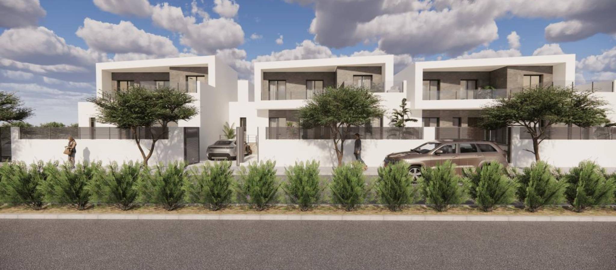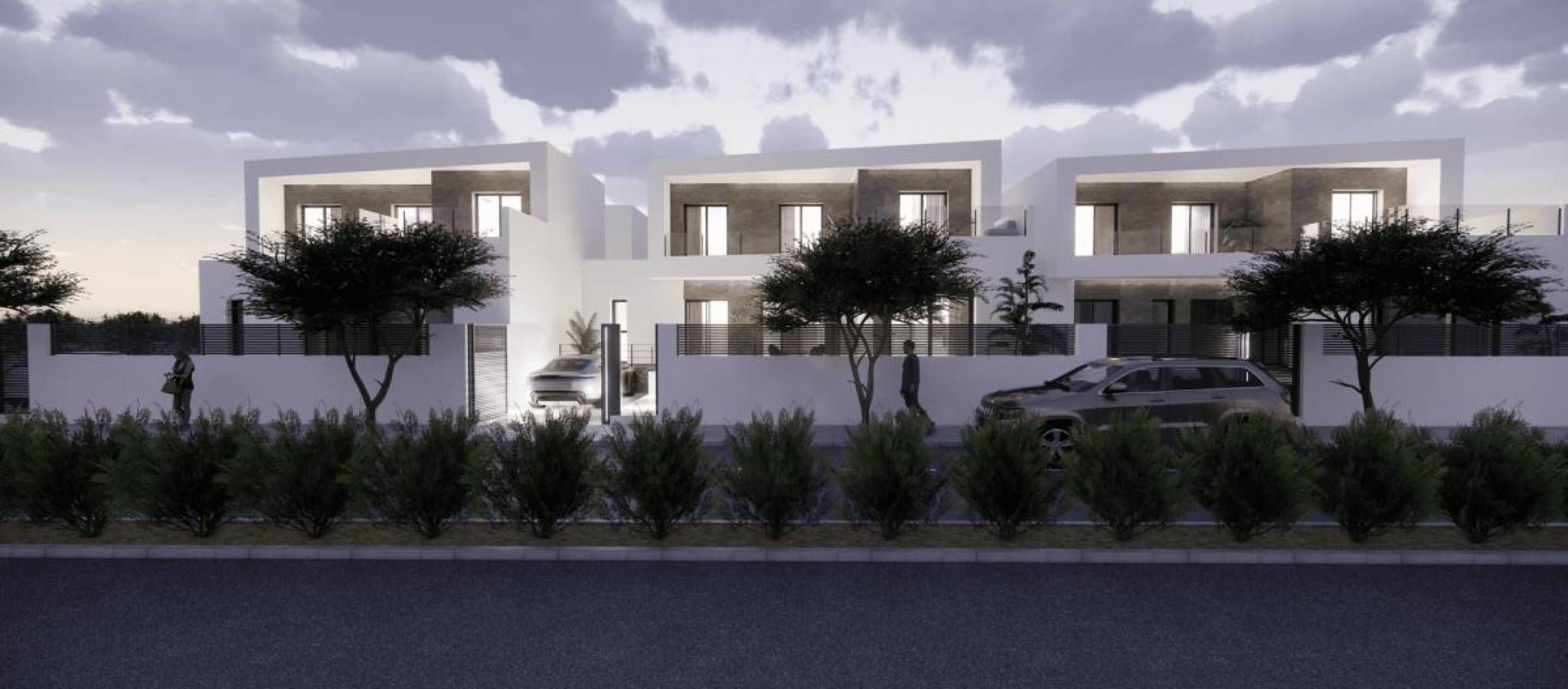 Discover your new home in these exclusive villas! Presenting a unique project consisting of six homes designed to offer maximum comfort, style, and efficiency. Situated in a modern area, these villas feature high-quality finishes and details crafted for your well-being. With an impeccable interior design, each villa features smoothly finished walls and ceilings, suspended gypsum ceilings in the bathrooms and kitchen, and premium floating floors throughout. LED lighting, both direct and indirect, enhances the ambiance of each room. The modern and fully equipped kitchen boasts custom cabinetry with a high-resistance porcelain countertop, a sink, and pre-installation for appliances. Elegant bathrooms include suspended vanities, contemporary countertops, and top-tier single-lever faucets alongside a shower tray with a glass screen. Comfort and technology are at the forefront with CLIMALIT glazing, ensuring excellent thermal and acoustic insulation. Villas come with ducted air conditioning pre-installation, an eco-friendly aerothermal heating system, and TV connections in the living room and bedrooms, ready for cable and antenna installation. Outdoor spaces include terraces and common areas paved with premium anti-slip tiles, complemented by aluminum railings with safety glass. High-quality carpentry is evident with a reinforced entrance door equipped with a high-security lock, lacquered aluminum exterior carpentry with a thermal bridge for optimal insulation, and smooth interior doors featuring luxury handle details. These villas represent a sound investment, combining elegance, functionality, and an ideal location. Enjoy spacious, bright areas perfectly designed for the comfort of you and your family. Don't miss this opportunity! Contact us today for more information and to arrange viewings. Your new home awaits in the vibrant city of Dolores, Alicante. Price range: 425,000 € - 450,000 €, featuring three bedrooms and a consistent surface area of 165 m².