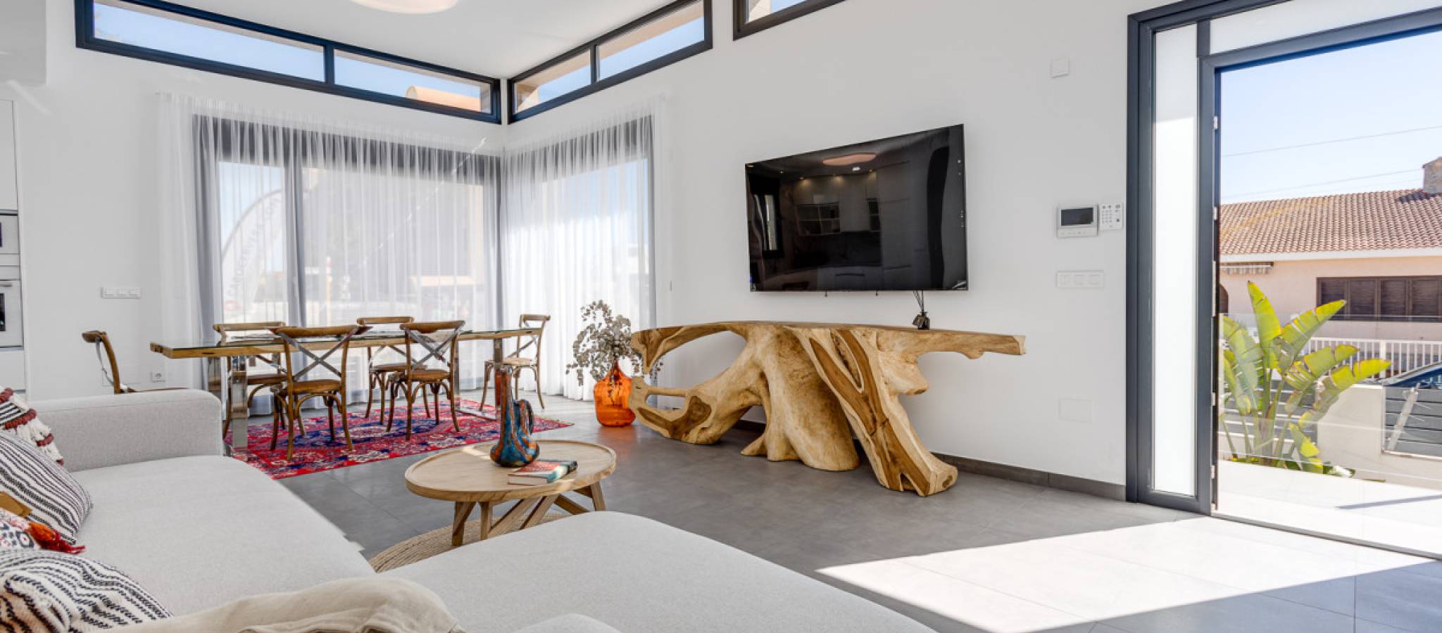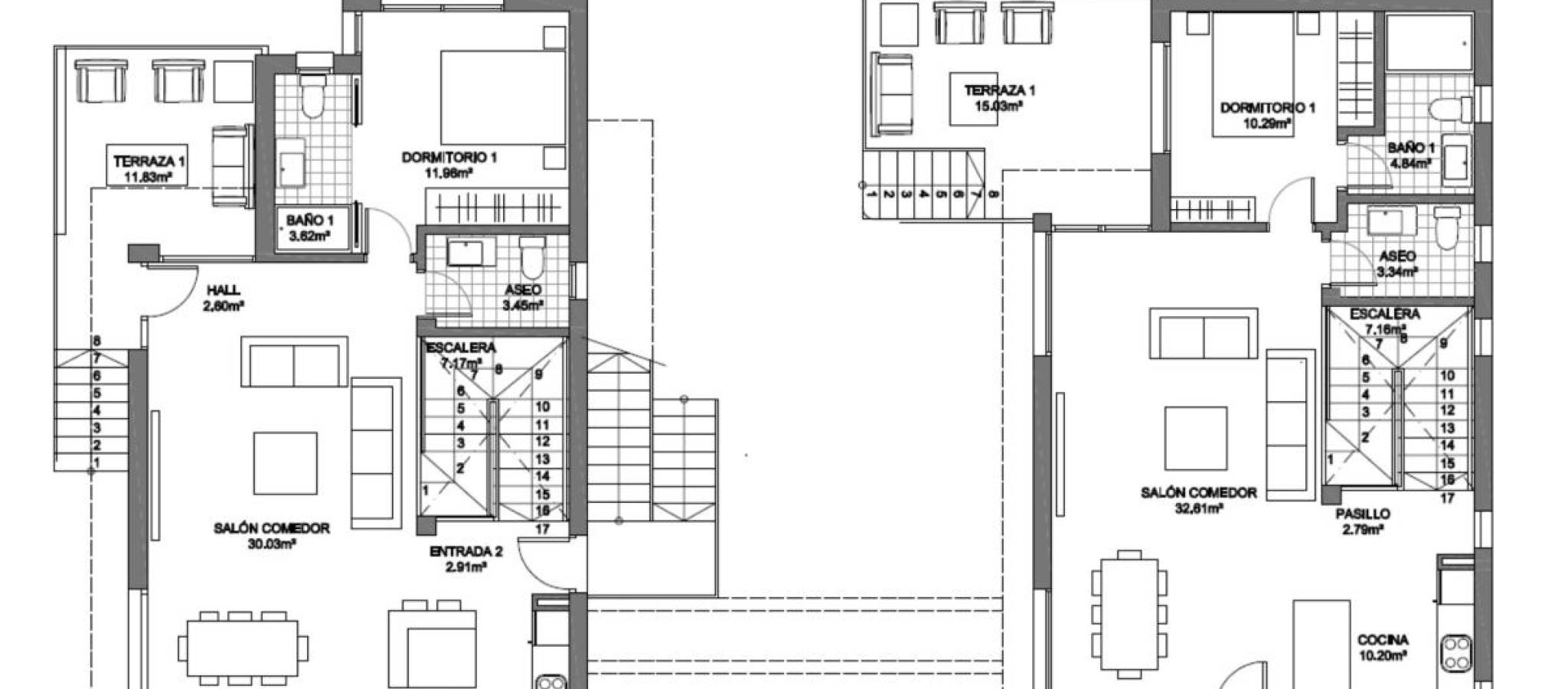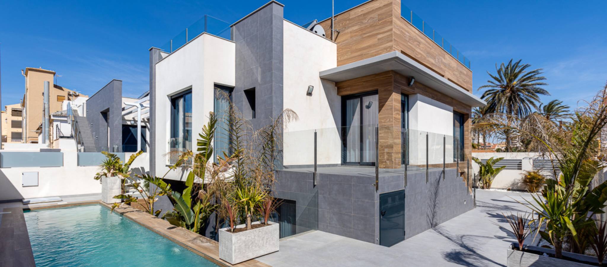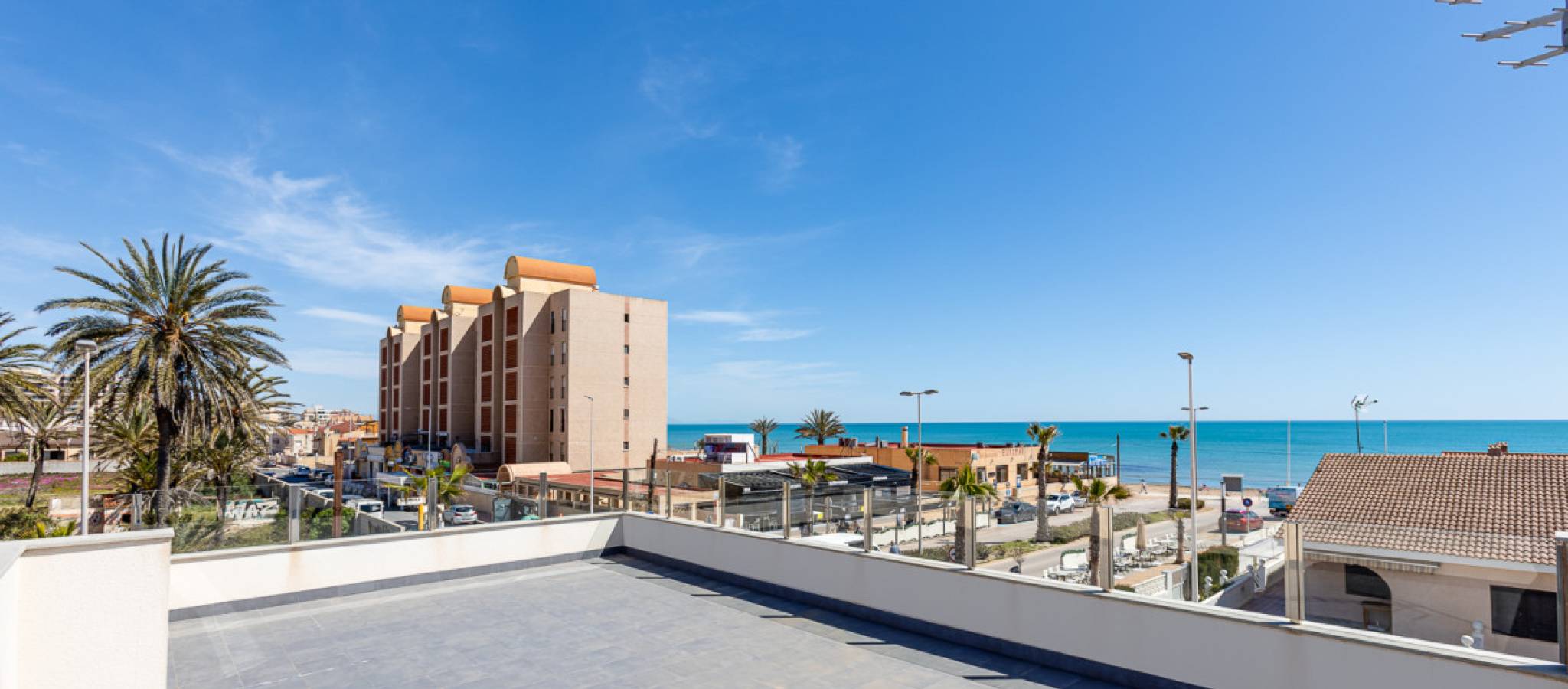Experience a unique opportunity to purchase a modern home just one minute from the beach, boasting direct sea views in the prime area of La Mata in Torrevieja. This locale is renowned for its well-developed infrastructure. La Mata was once a small fishing village but now offers all necessary amenities for daily life. With 9 km of pristine sandy beaches, the area enjoys a climate that provides an impressive 300 days of sunshine annually, with average temperatures around 20°C. Situated in an area characterized by spacious avenues, you'll find two independent villas with a prime location. Each property comes with a plot of 320 m² and a private pool. The total built area is 310 m², featuring 4 double bedrooms (including 2 en-suite), 4 bathrooms, 2 living rooms, and a kitchen. Additional amenities include private parking, terraces, and a solarium offering stunning sea views. La Mata is conveniently connected to the rest of Torrevieja and Alicante via bus services. There are two hospitals in close proximity for peace of mind. For golfing enthusiasts, you can find golf courses just 6 km away. Additionally, the international airport in Alicante is only 42 km from this vibrant coastal community.