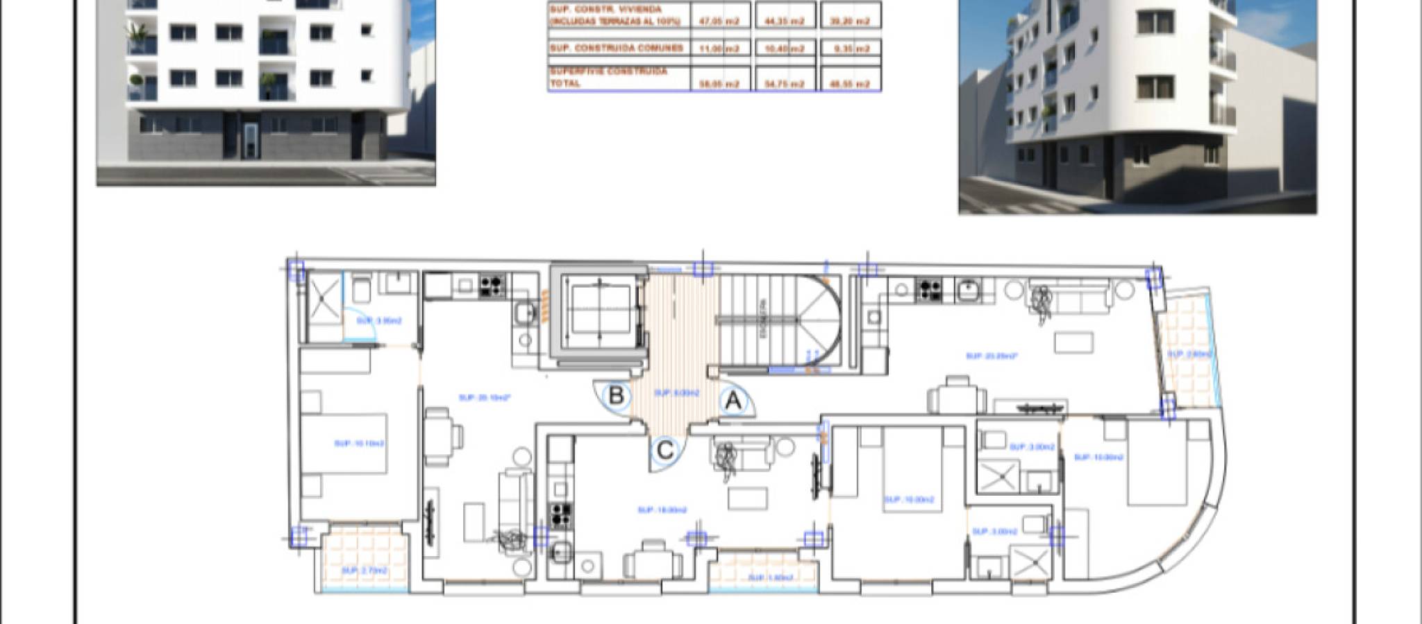 This exclusive residential project consists of just 12 apartments, situated right in the heart of Torrevieja, and is less than 700 meters from the popular city beach. With a sleek and modern design, the residences provide one or two bedrooms, a bathroom, an integrated kitchen, and a spacious open-plan living and dining area that leads to a stylishly tiled terrace. The penthouses boast generous private terraces, perfect for soaking up the Mediterranean sunshine. Located at a unique spot in central Torrevieja, the popular city beach is renowned for its vibrant atmosphere. Surrounded by numerous bars, supermarkets, shops, and restaurants, it is an ideal place to indulge in fine cuisine while enjoying stunning sea views. The price range of these exquisite apartments is between 149,000 € and 239,000 €, offering excellent value for a home in this sought-after location. With surface areas ranging from 52 m² to 74 m², there's a choice for everyone looking for comfortable and modern living. Located in the southern part of the Costa Blanca, Torrevieja elegantly merges its rich fishing heritage with its contemporary evolution into a top destination in the region. The city provides all necessary amenities and boasts excellent transport links to nearby cities such as Alicante, Murcia, and Elche. Residents enjoy a blend of traditional charm and modern conveniences, making it an attractive place to live for both locals and visitors alike.