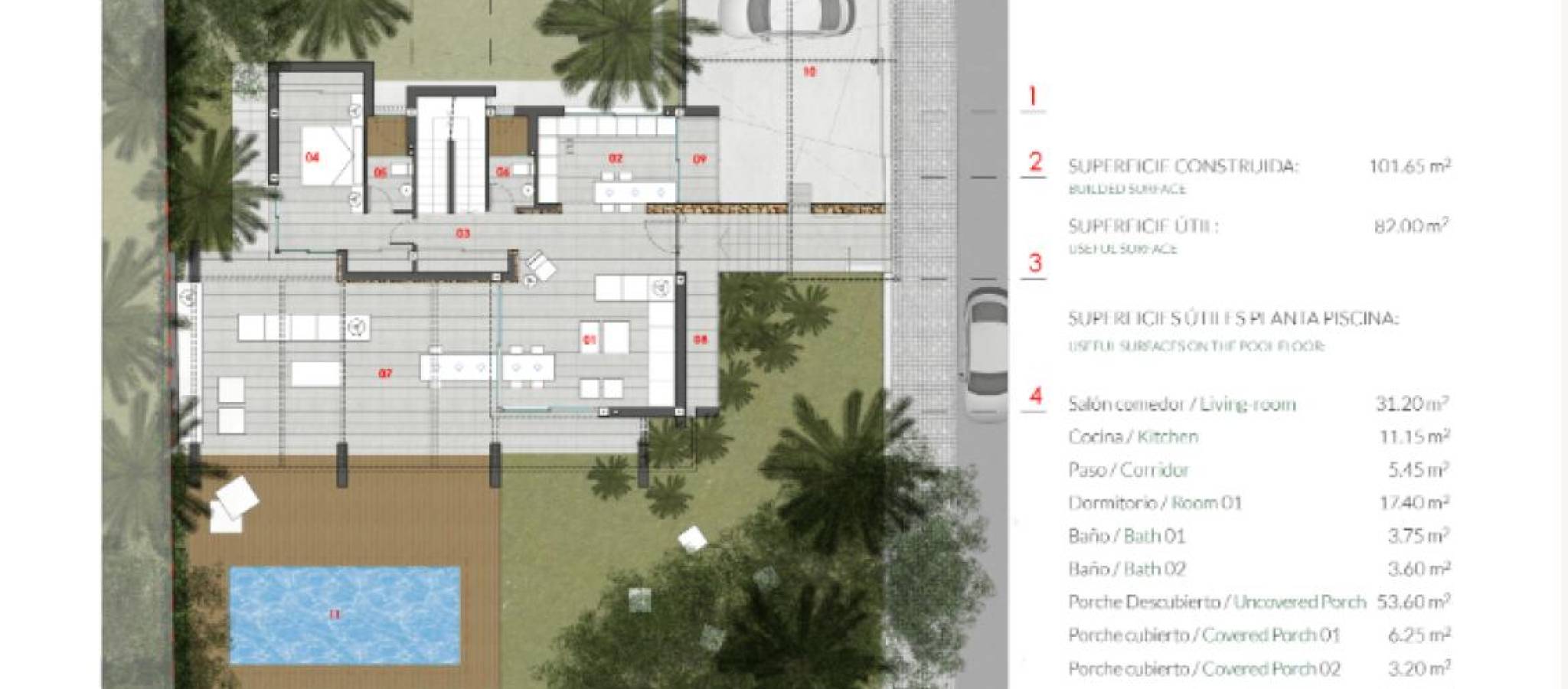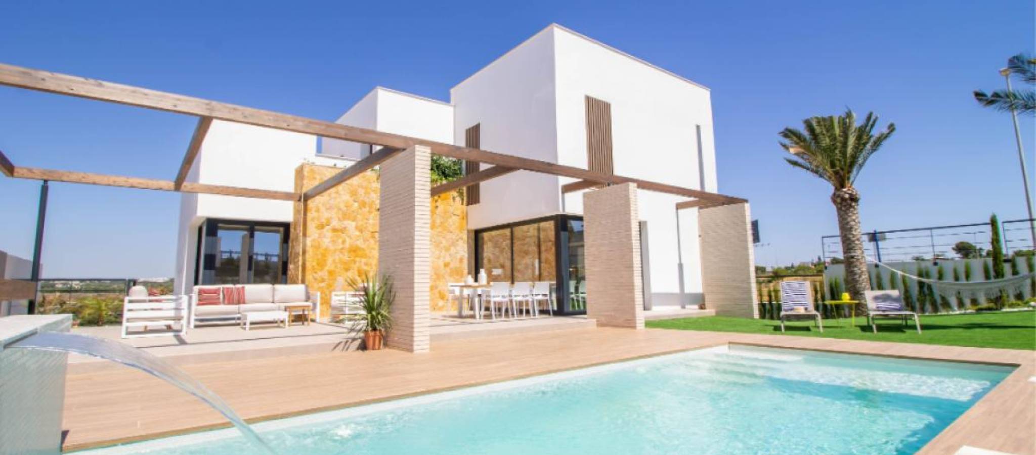 Spanning plots of 500 m², each villa offers between 4 and 5 spacious bedrooms and 4 elegant bathrooms. Designed with open spaces to enhance natural light, these homes also boast private gardens and pools, ideal for enjoying the Mediterranean climate all year round.