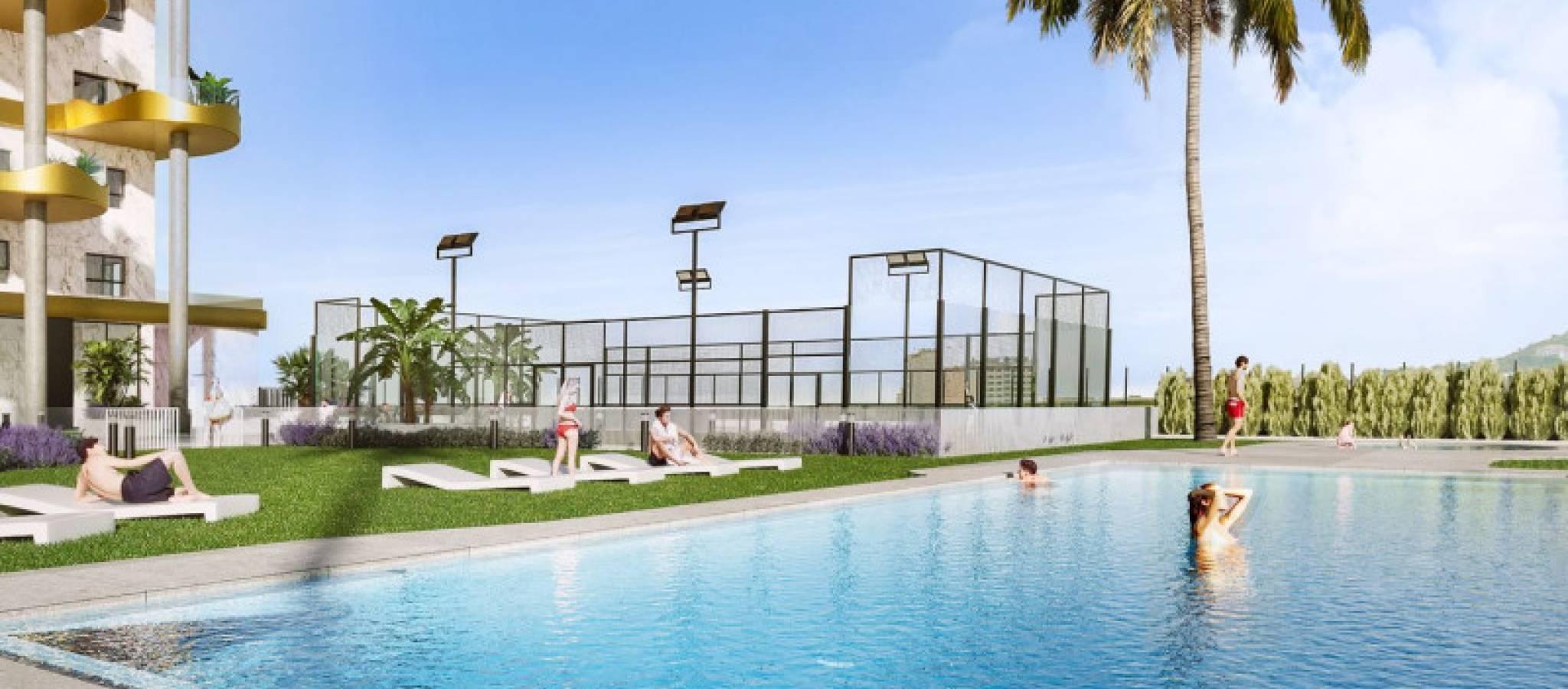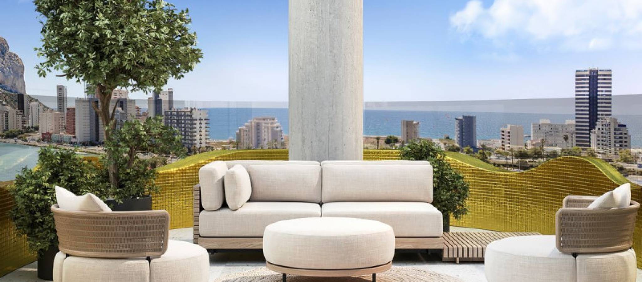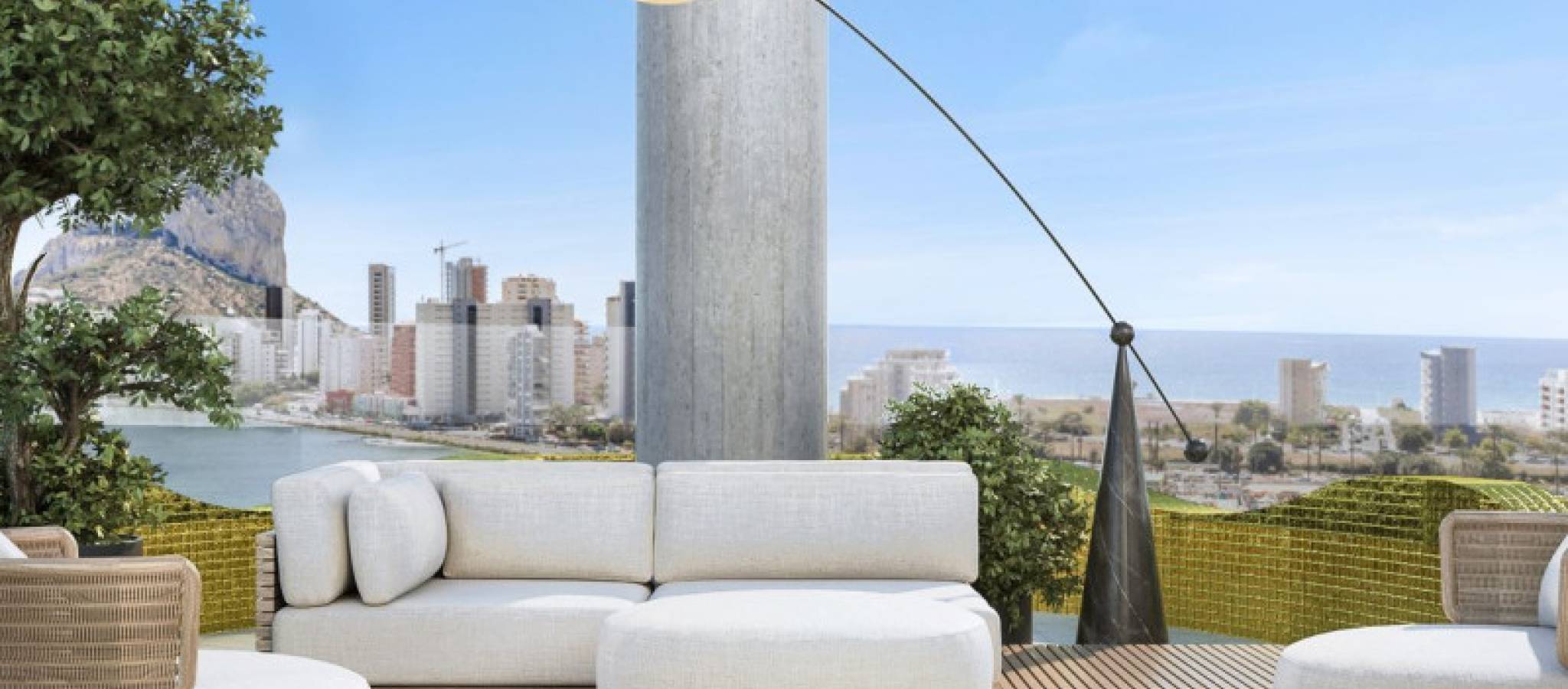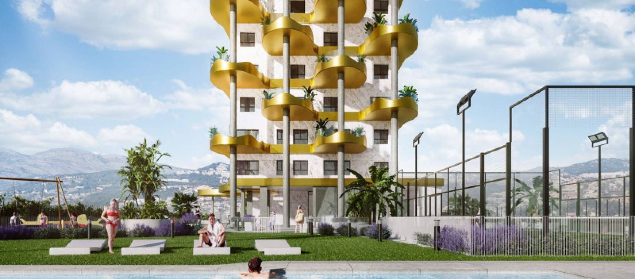 Discover the stunning residences offering expansive terraces that provide breathtaking, panoramic views of the best that life in Calpe has to offer, including its famous beaches and iconic landmarks. Imagine waking up every morning to scenes of unparalleled beauty, transforming your lifestyle into one that feels as if it's integrated within the skies over Calpe. The serene lagoon is just a short distance away, with only a school plot separating you from its tranquil waters. Enjoy luxurious amenities such as a swimming pool, paddle tennis, a state-of-the-art gym, calisthenics area, and children's playgrounds, all set within spacious communal areas that enhance your living experience. The building's extraordinary design is highlighted by a striking central structure, featuring ceramic cladding in white and golden marble textures. From this axis emerge terraces that glisten with bold and luminous gold. Your dream home, your new life in Calpe, awaits you! The construction of these exceptional residences is already underway!