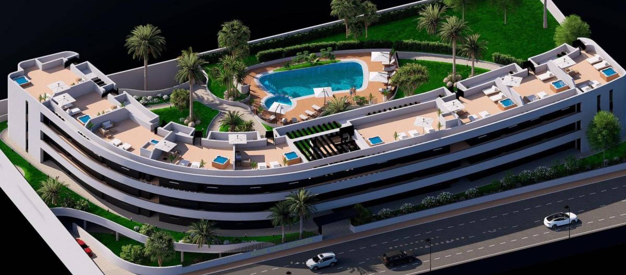 Discover an exclusive new property in a premium location near the golf course and just minutes from the seaside. A residential development designed for those seeking a high quality of life, tranquillity, and excellent access to all services. The development consists of 28 modern apartments with meticulous architecture, available with a garage space and storage included, aimed at offering comfort and functionality in daily life. The properties stand out for their contemporary design and specifications: Pre-installation of air conditioning via ductwork Pre-installation of electric vehicle charging points Bright and well-organised spaces Some properties also feature large private solariums, perfect for enjoying the Mediterranean climate all year round. These areas include a well-equipped outdoor kitchen with a granite worktop, sink, appliances connections and power, and TV outlets, ideal for creating a bespoke outdoor leisure area. The communal areas have been designed for enjoyment and relaxation: Two outdoor swimming pools with lighting Carefully planned environment for unwinding Parking and storage rooms within the same building Situated in one of the most promising areas of the region, this development combines proximity to golf, the sea, and all services, making it an ideal choice as a permanent residence, a second home, or an investment. Request information and secure your property in an area where sunshine, sport, and tranquillity set the pace of life.