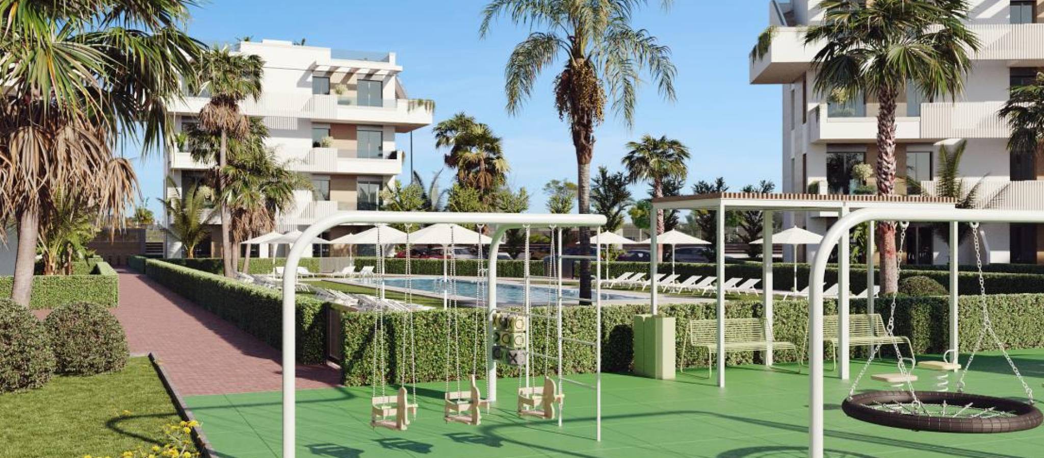This modern residential complex features expansive communal areas and exclusive services. It consists of five independent buildings, each with eight apartments spread across four floors (two homes per level), totalling 40 residential units. The project is designed to offer a perfect balance of privacy, comfort, and high-quality services. In addition, the complex includes an independent building dedicated to amenities and conveniences, offering a reception, café, and fitness centre, delivering a comprehensive experience for both owners and guests. The residence is set on a plot exceeding 7,000 m², within a closed complex with controlled access and perimeter fencing, ensuring security, privacy, and tranquillity. The communal areas are designed for maximum enjoyment and include: Mediterranean-style gardensCommunity poolsChildren's play areaLarge parking areas Residents also benefit from access to an exclusive resort-like environment, providing: A large, crystal-clear artificial lakeSports and leisure facilities for all agesSocial club and dining optionsExtensive landscaped green areas24-hour security and comprehensive maintenance This residential complex represents an excellent choice for those seeking a modern home in a well-maintained environment, featuring high-level services and spaces designed for wellbeing, leisure, and quality of life throughout the year.