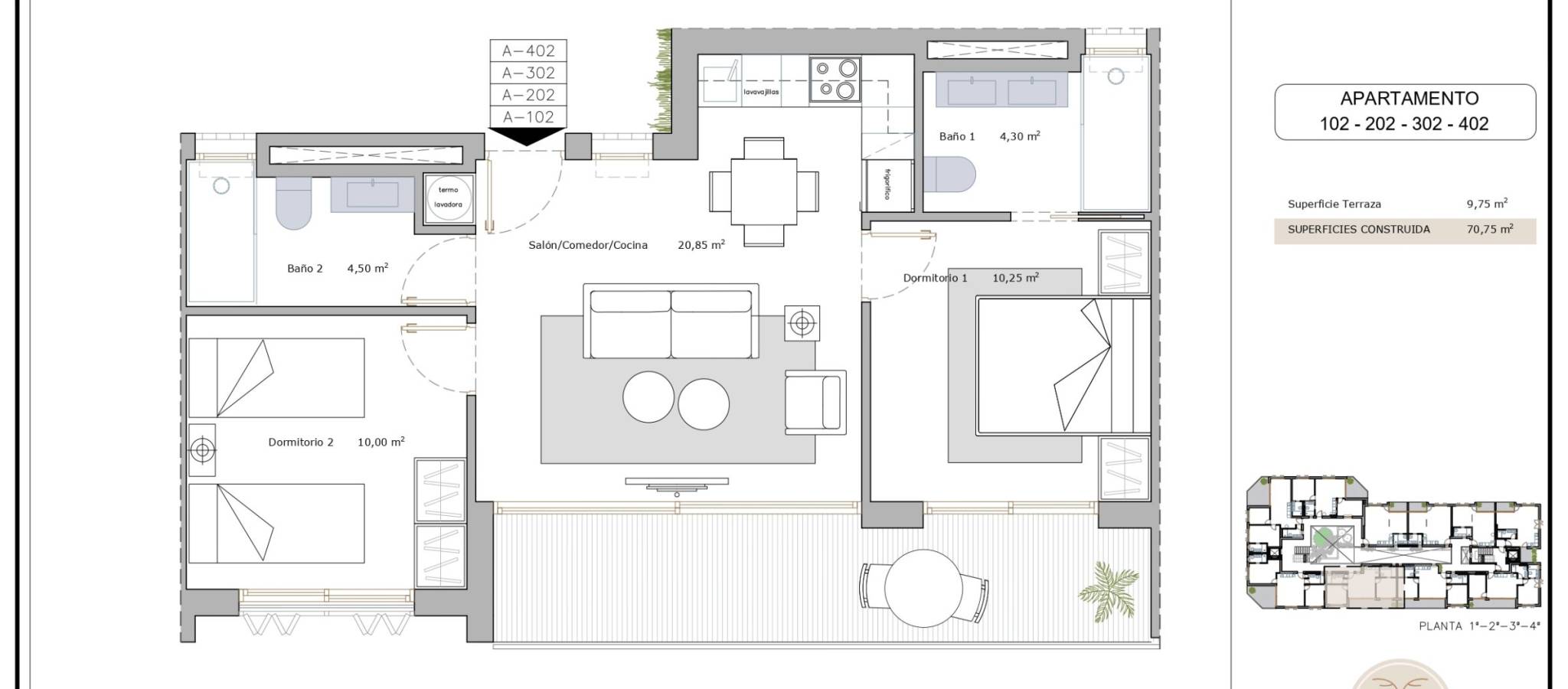 The properties are delivered fully furnished with air conditioning unit, designed to offer comfort, quality and style. Magnificent rooftop swimming pool.